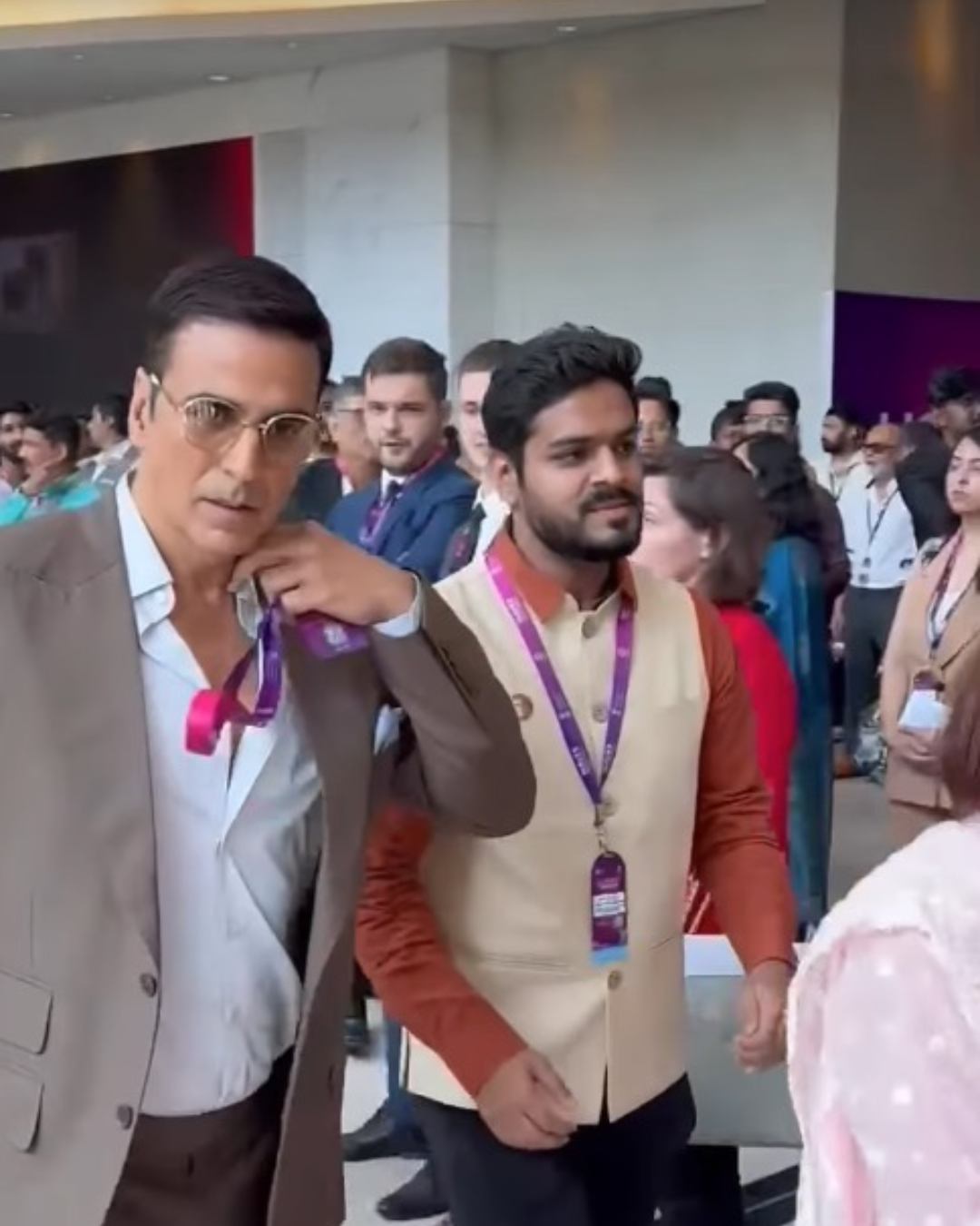 Akshay Kumar opted for a grey blazer and trousers paired with a white shirt.