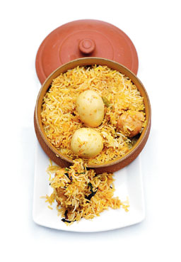 Metiabruz Murgh Biryani, a homegrown chicken biryani complete with potato and boiled egg |