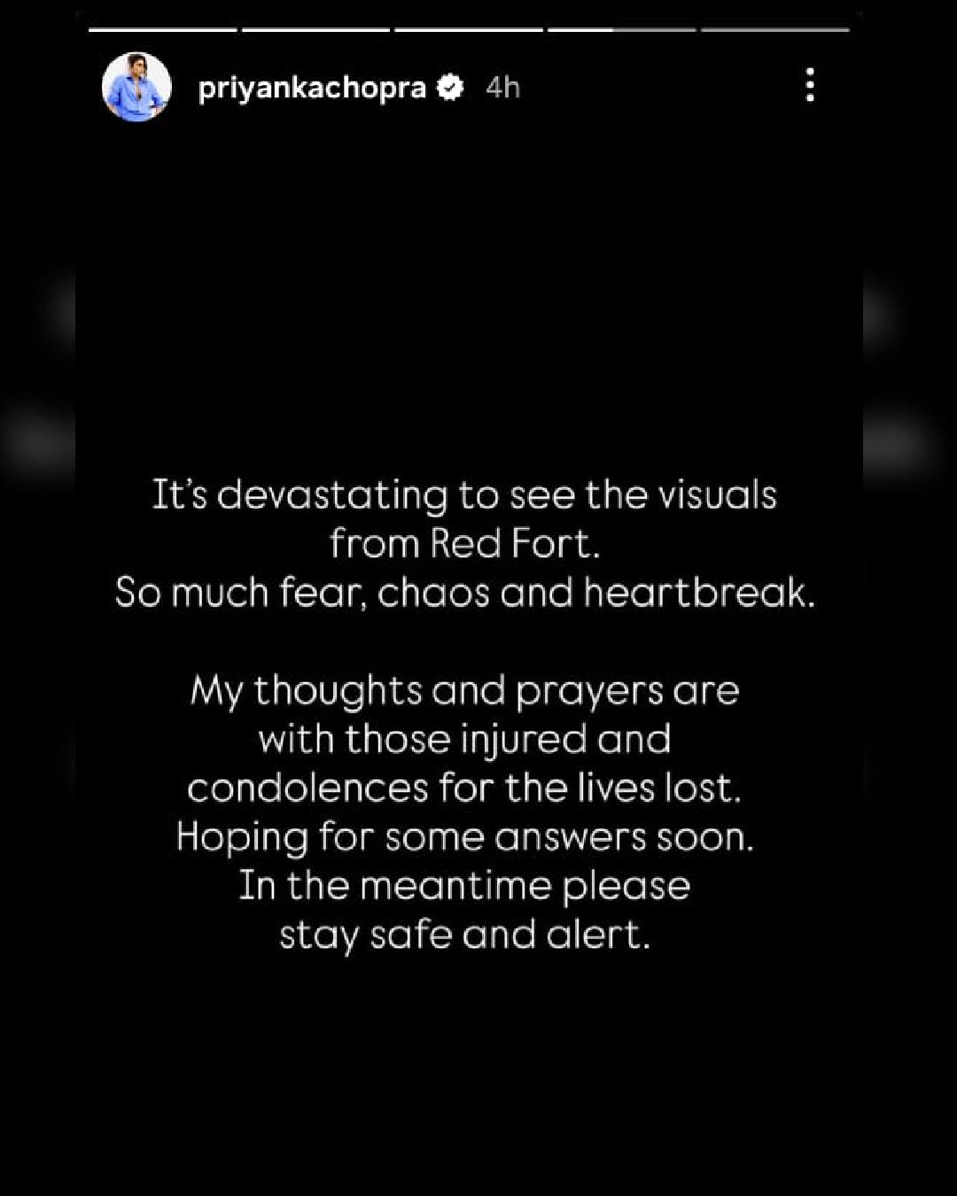 Urging everyone to remain safe and alert, Priyanka wrote, “It's devastating to see the visuals from Read Fort. So much fear, chaos and heartbreak. My thoughts and prayers are with those injured and my condolences for the lives lost. Hoping for some answers soon. In the meantime, please stay safe and alert.”