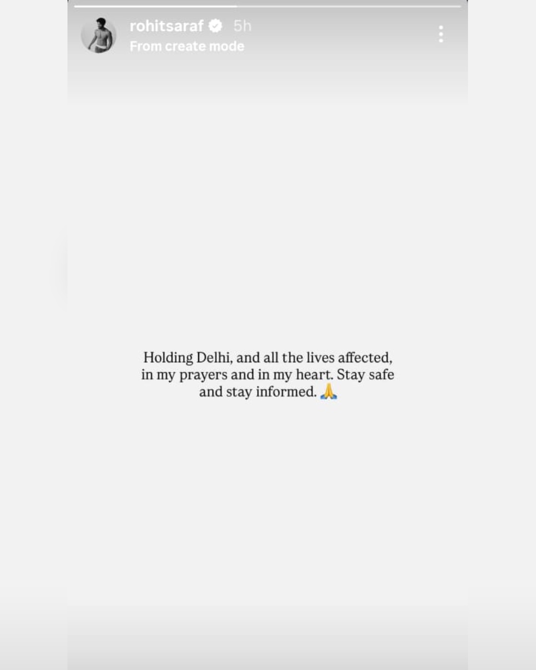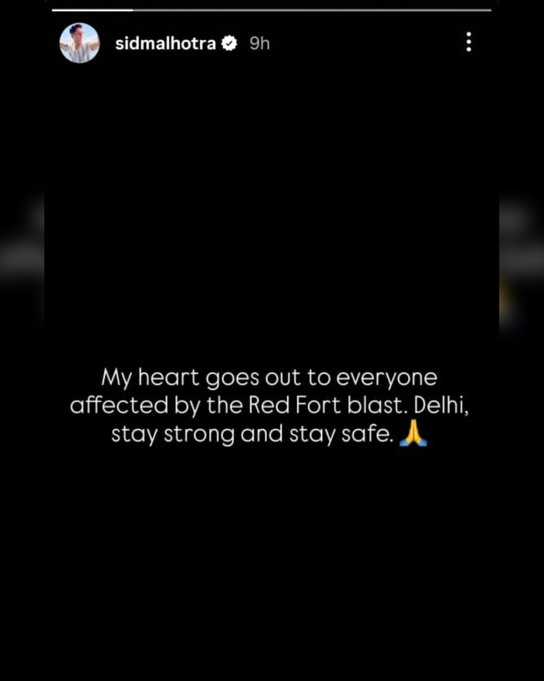 “My heart goes out to everyone affected by the Red Fort blast. Delhi, stay strong and stay,” posted Sidharth.