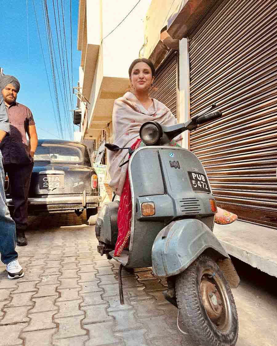 Clad in a red suit, Parineeti posed on a scooter. “Shooting this film has topped any other film experience because I got to sing and act - 2 things I’m the most passionate about, so thank you,” the actress signed off.