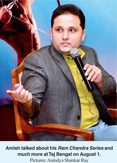 I brought the weather with me, but not in a good way,” quipped Amish the Mumbaikar, as he thanked his audience for braving flooded roads to gather at Mandarin, Taj Bengal, for the Calcutta launch of Scion of Ikshvaku on August 1. Sitting in conversation with writer-editor Anjum Katyal, partnered by Taj Bengal and t2, the bestselling writer delved into his unique world of mythological thrillers.
