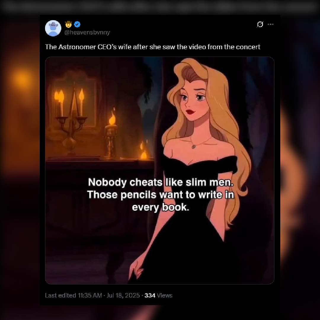 “The Astronomer CEO’s wife after she saw the video from the concert,” reads the caption to a meme on X.