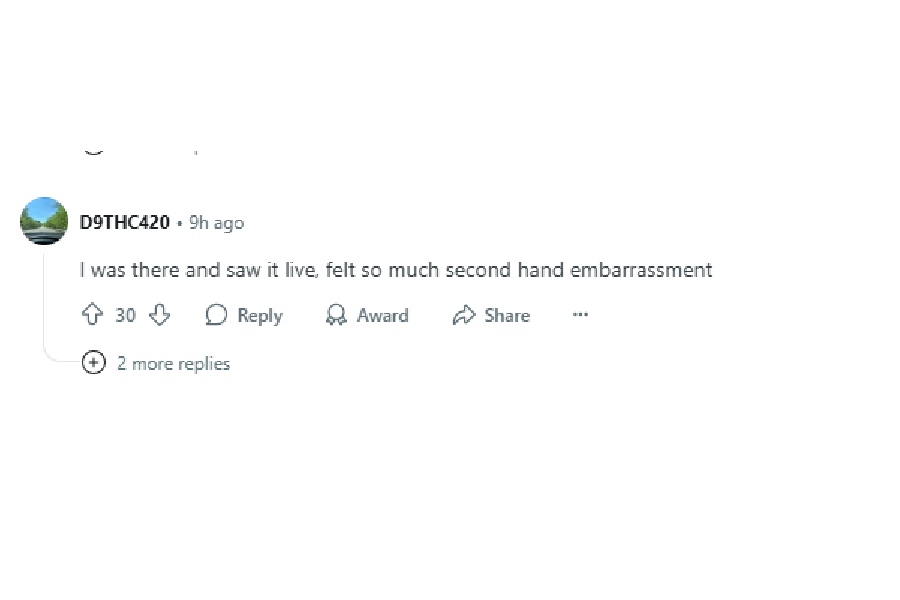“I was there and saw it live, felt so much second hand embarrassment,” commented another Reddit user on the post.