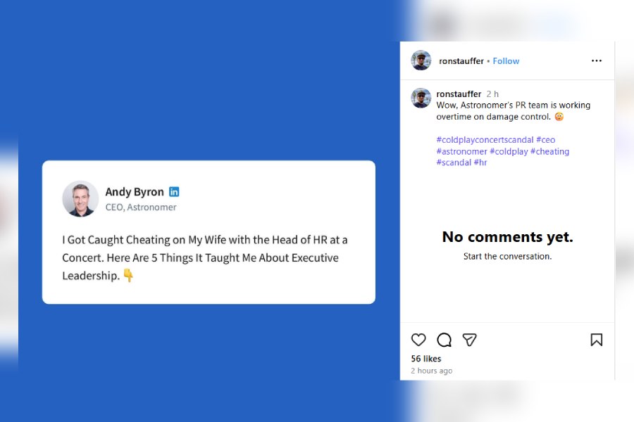 “I got caught cheating on my wife with the Head of HR at a concert. Here are 5 things it taught me about executive leadership,” wrote an Instagram user, pretending to be Byron.