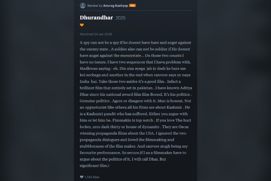 In a long note shared on Letterboxd website, Kashyap praised Dhar’s storytelling and Ranveer Singh’s performance in the espionage thriller.