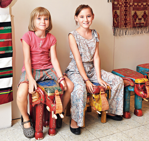 “I want to change my bedside table now!” was seven-year-old Alice’s (right) request to mom Laura after she spotted the elephant-shaped stools in wood (topmost picture). Sister Melissa, 9, loved the colourful fabrics.