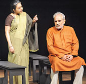 Kharbanda, who returns to the stage after almost two decades, gives a power-house performance as an ageing author whose beliefs are shattered as the play progresses. He oscillates between calm and shaky, philosophical and funny, strong and broken in the blink of an eye. His stage chemistry with Fatehpuria was a treat.