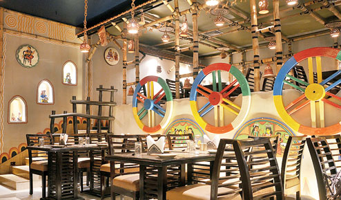 The 78-seater dhaba wears a new look. There are painted cartwheels and terracotta patachitra on the mud walls; terracotta lamps hang from bamboo rafters. “We hired artisans who make pandals and a puppeteer to work on the look,” said Rajesh. Even the stairs to the mezzanine floor have bamboo handrails.