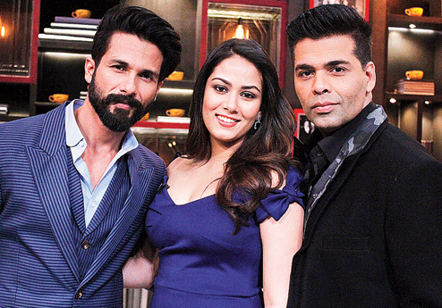 Karan Johar: For the first time, Shahid has come on this show with someone he’s spending his life with. He was here with all his alleged girlfriends — Priyanka, Kareena, Sonakshi — and finally, he’s here with you, Mira.