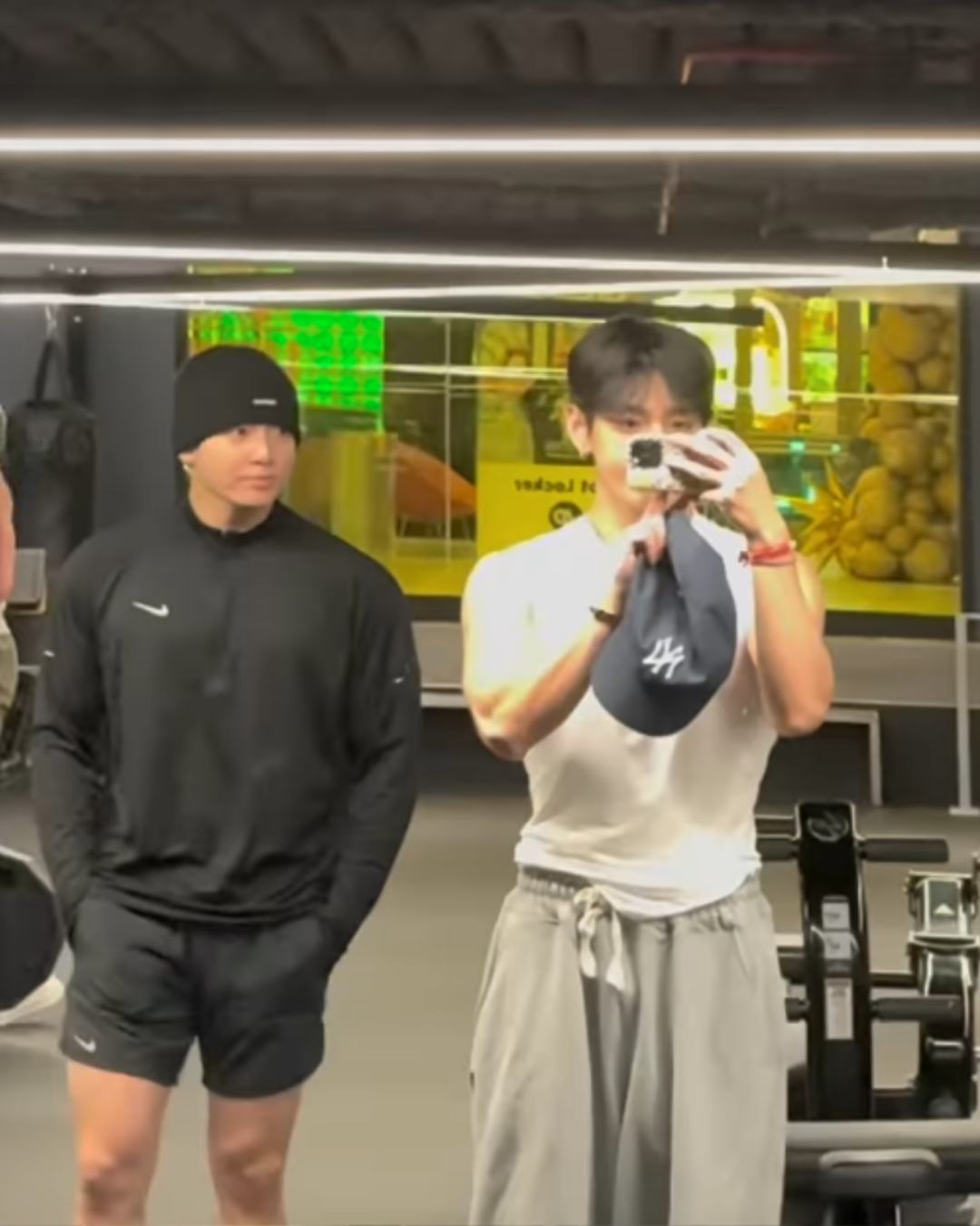 Kim Taehyung, aka V, has posted a set of glimpses from his workout sessions with his fellow bandmates. In one of the clips, V took a mirror selfie with Jungkook.