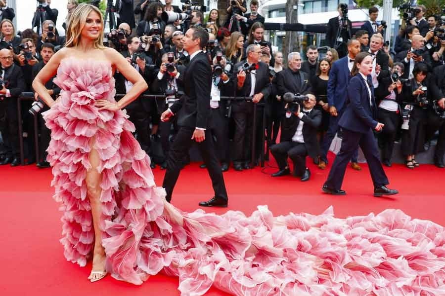 German television actress Heidi Klum was also among the guests who ignored the dress code directive imposed by the organisers. She attended the event in a gorgeous pink Elie Saab floral gown. The ombre pink shade gown featured a strapless neckline, a slit on the front, and a long floor-sweeping train.