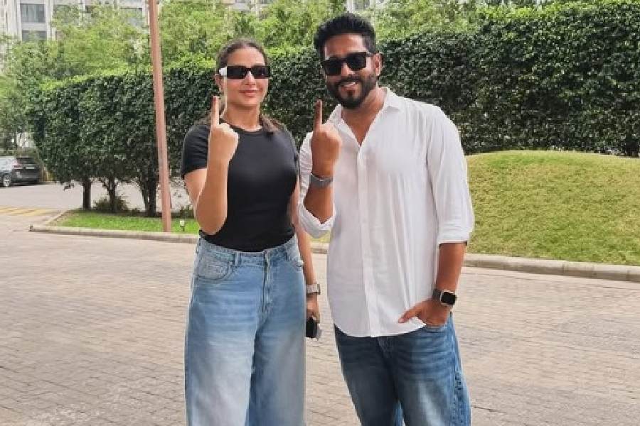 Subhashree Ganguly went to exercise her democratic right with husband Raj Chakrabarty. Raj is contesting the polls from Barrackpore on a TMC ticket