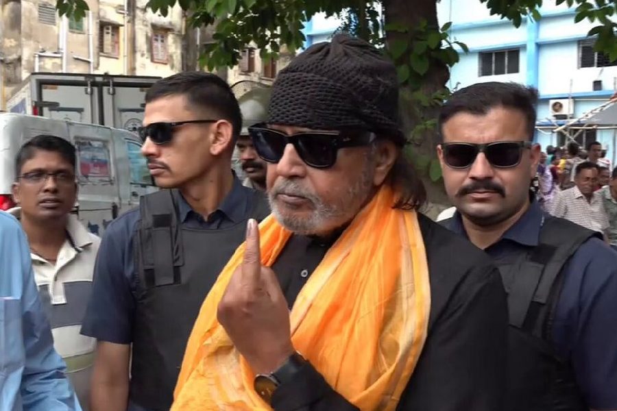 Actor and BJP leader Mithun Chakraborty posed for the lens after after casting his vote.