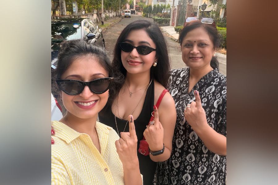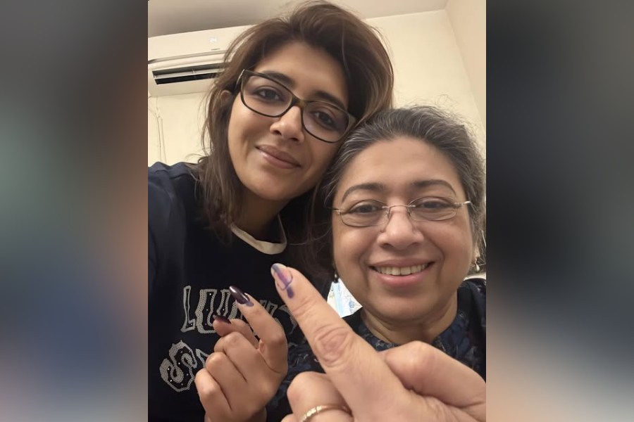 Sreenanda Shankar took a selfie with mother, dancer-actress Tanushree Shankar, after exercising their right to vote.