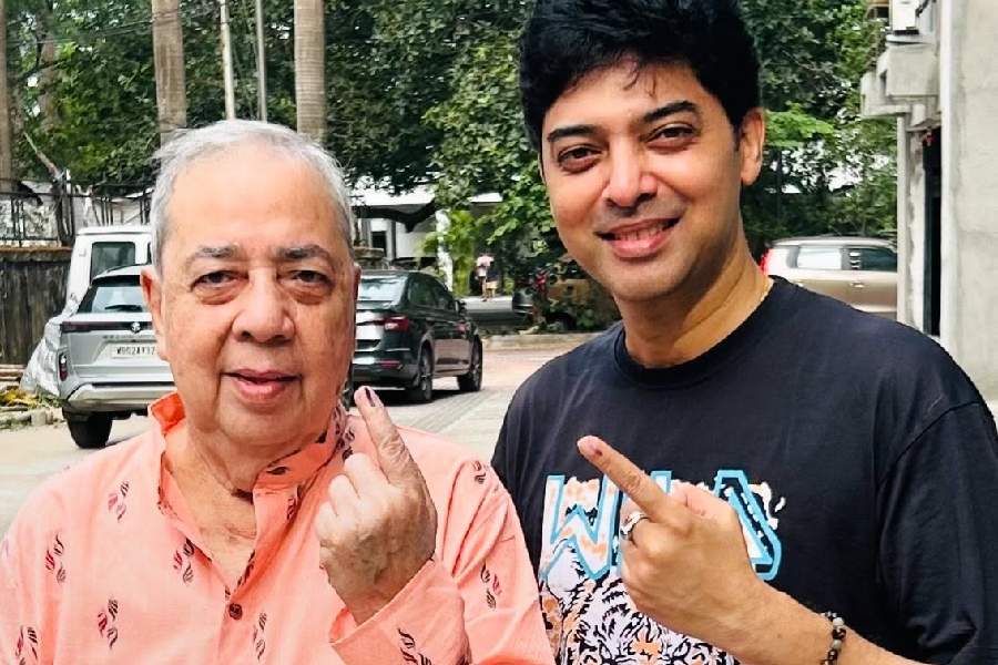 Actor Prosenjit Chatterjee exercised his democratic right along with son, Trishanjit Chatterjee.