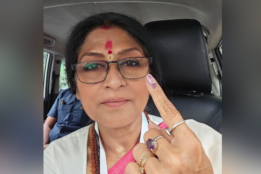 Roopa Ganguly clicked a selfie while returning home from the polling booth. She is contesting the polls from Sonarpur Dakshin constituency on a BJP ticket.