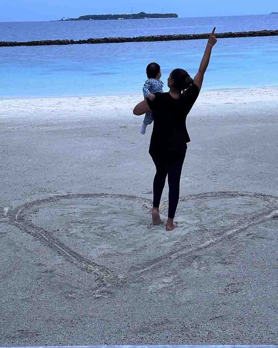 Bollywood actress Bipasha Basu, who made her OTT debut with MX Player's 2022 crime thriller series Dangerous, celebrated her 45th birthday with husband Karan Singh Grover and daughter Devi Basu Singh Grover in Maldives on Sunday. Here’s a look at how the family enjoyed some quality time by the beach.
