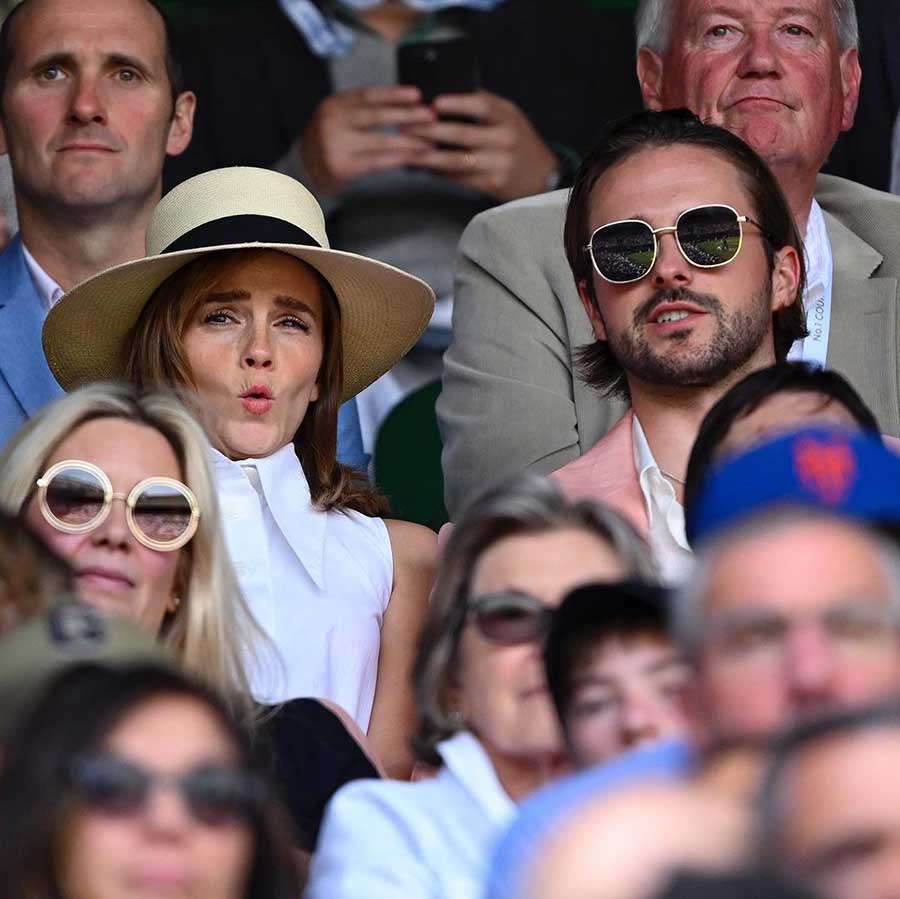 Emma Watson and her brother Alex came to watch the match together. Emma looked stunning in a white outfit and a beige hat.