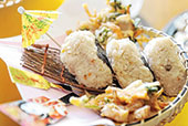 The Shrimp Takoyaki is served with a zingy wasabi mayonnaise. There’s also Onigiri or rice balls and Yaki Soba, lightly stir-fried udon noodles.