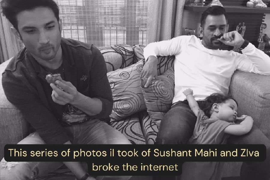 Another candid picture shows Sushant spending time with Dhoni and his daughter Ziva.