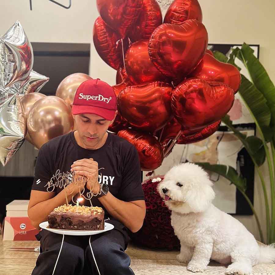 “Grateful for all the love,” wrote the actor, sharing a picture of him making a wish before blowing the candles on his cake. His dog Katori can be seen waiting patiently by his side.