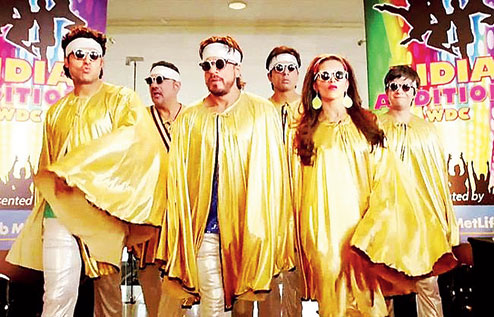 The dance costumes: We learnt from Farah about what looks great on stage. We went with a certain amount of bling and craziness — with the sensibility that Mohini (Deepika Padukone) brought in— in their India leg. The gold cape was Farah’s tribute to the ’80s. We were looking at a lot of ’80s reference like Abba, Madonna and Cyndi Lauper. Fashion was insane in the ’80s. The HNY team had a sequinned jewel-tone top with silver pants, silver shoes and silver accessories! And, they had this metallic diamond pendants hanging in front. They all had these headbands, again from the ’80s. For their India finals, there was again a lot of ’80s reference. Geometric lines, patchwork and contrast. The World Dance Championship semis were a crazy ode to Michael Jackson, which Farah was very sure she wanted to do. Their red-and-black outfit with lights was inspired by MJ’s Thriller outfit. By the time they reached the World Dance Championship finals, they also wanted to stand for something and make a point. That was also an ode to India. We did these short blue bandhgala jackets, dhoti pants and colourful bundis.
