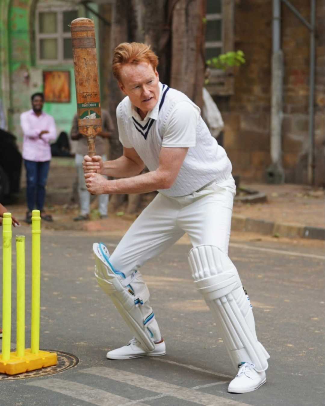 Earlier this week, O’Brien posted pictures from his maiden trip to Mumbai. One of the pictures shows the comedian playing cricket dressed in whites, paired with a classic Team India cable-knit sweater.