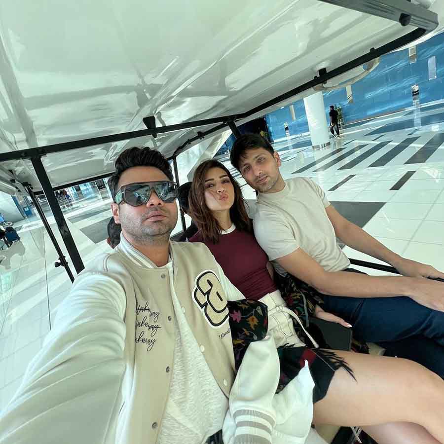 Kriti Sanon, clad in a maroon top, dropped a photo with some of her team members.