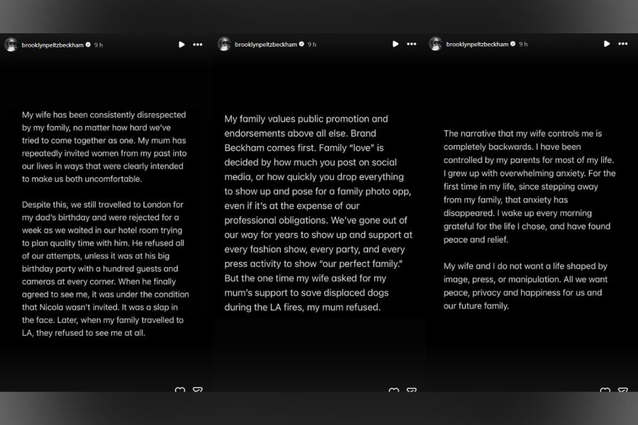 “Brand Beckham comes first,” Brooklyn wrote. “I have been controlled by my parents for most of my life. I grew up with overwhelming anxiety. For the first time in my life, since stepping away from my family, that anxiety has disappeared.”