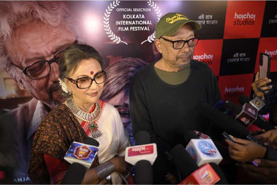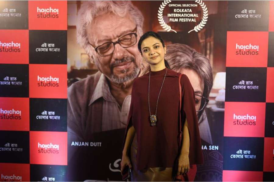 The Wednesday premiere of Parambrata Chattopadhyay’s Ei Raat Tomar Amaar, starring Anjan Dutt and Aparna Sen, was attended by a galaxy of Tollywood stars including Dev, Moon Moon Sen, Solanki Roy and Sandipta Sen at Cinepolis, Acropolis Mall in Kolkata. Here’s a look.