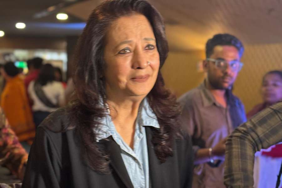 Moon Moon Sen, who has shared screen space with Anjan Dutt in films like Bow Barracks Forever (2004) and Borodin (2018), graced the event in a black suit.