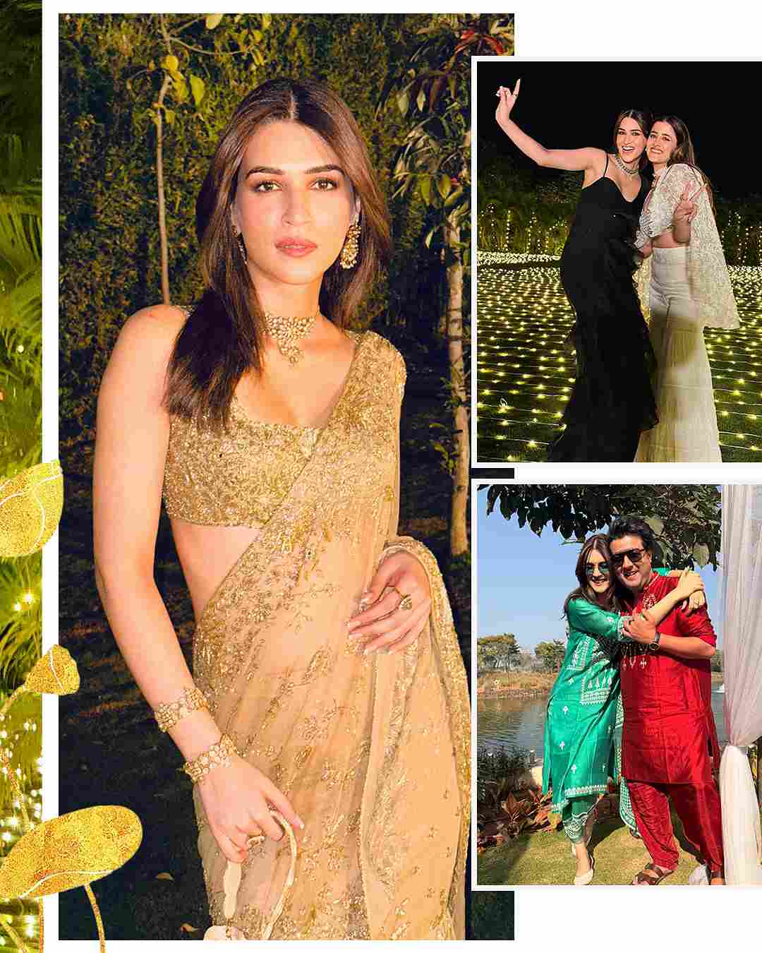 Actress Kriti Sanon won the internet with her glamorous “desi” looks on Saturday, sharing photos of her dressed in ethnic wear at a wedding she attended recently with sister Nupur Sanon.