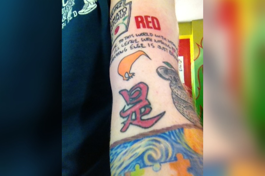 Sheeran shared an image flaunting one of his tattooed arms. He got the tattoo before the release of Taylor Swift’s album Red in 2012.