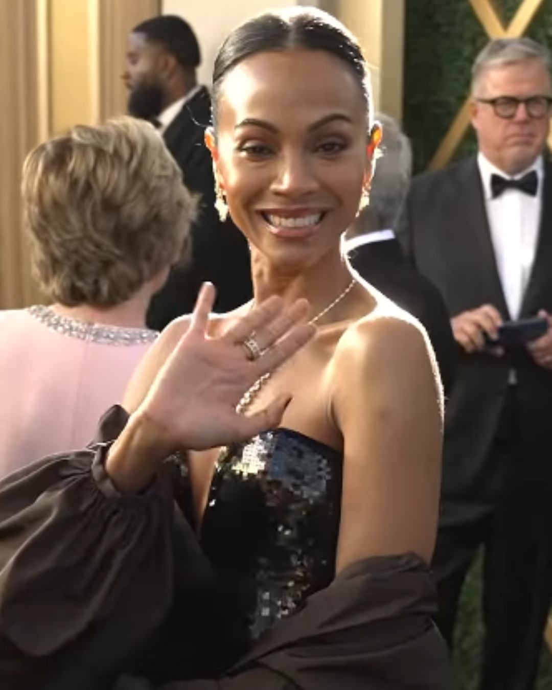 Emilia Perez star Zoe Saldana wore a sequinned Saint Laurent gown with a plunging sweetheart neckline. She accessorised with diamond jewellery and draped a brown sleeved cape around her. Emilia Pérez, a musical revolving around a drug lord undergoing gender-affirming surgery, bagged the award for best musical or comedy and led the night with four wins.