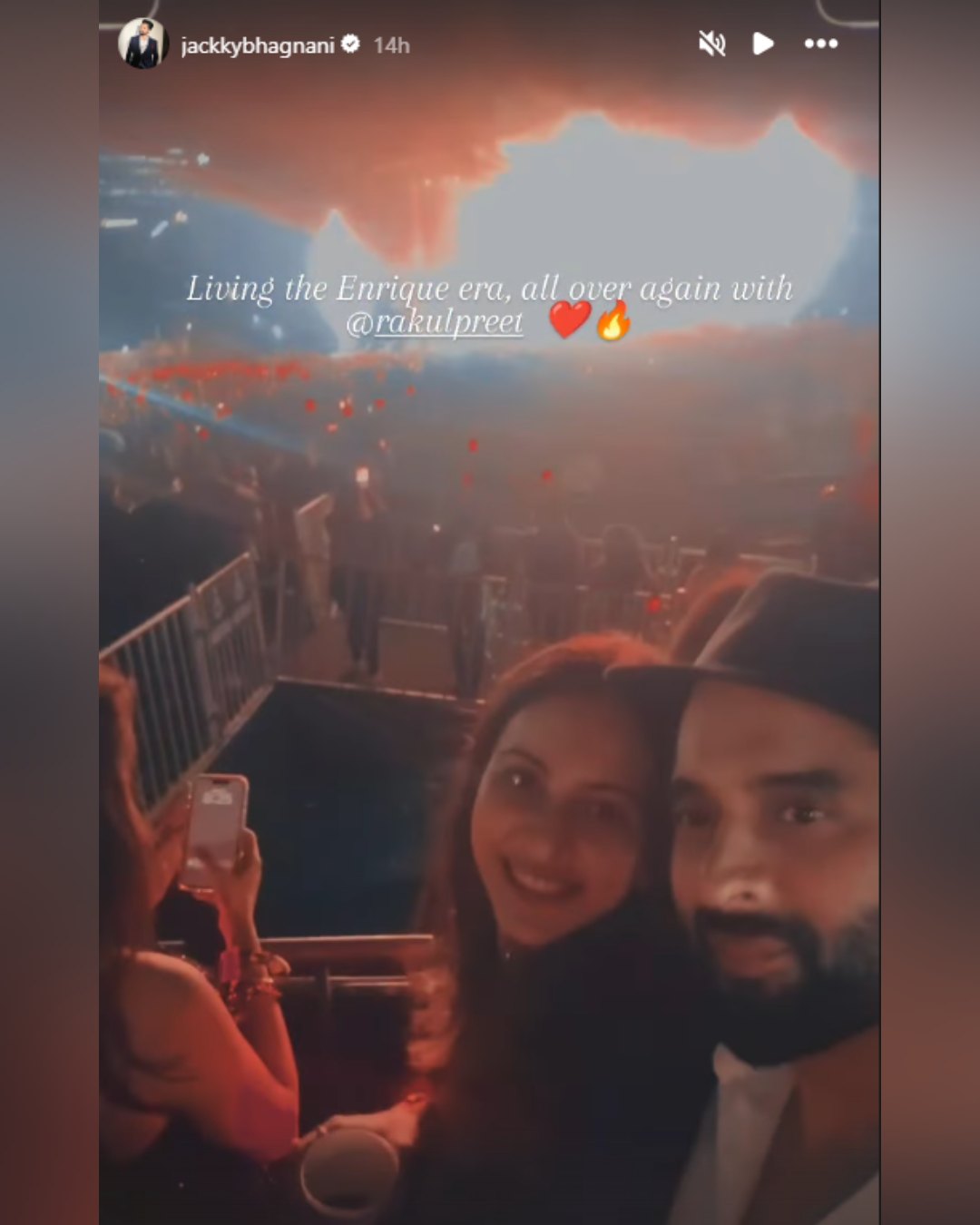 Rakul Preet Singh, who attended the concert with her husband, actor-producer Jackky Bhagnani, appeared to be vibing and singing along with the song lyrics.