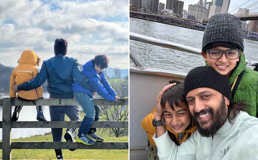 Genelia Deshmukh shared pictures of her husband Riteish Deshmukh and sons Riaan and Rahyl enjoying a family vacation. In one of the pictures, they are seen admiring the beauty of a majestic mountain range. Another photo captures them cruising on a yacht.