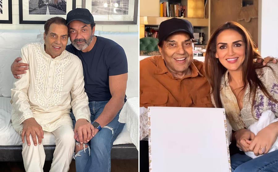 Bobby Deol and Esha Deol also dropped photos with their father Dharmendra on the special occasion.