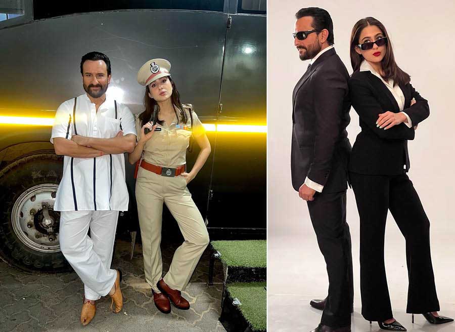 Sporting a cop uniform, Sara Ali Khan posed with her dad Saif Ali Khan, who was dressed as a criminal. Sara referred to her father as her ‘friend, philosopher and guide’ as well as her ‘partner-in-crime’. Another photo shared by the 28-year-old actress on Instagram shows her twinning in black with her dad.