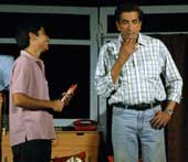 | Sabysachi with son Gourab as Feluda and Topse in a rehearsal |