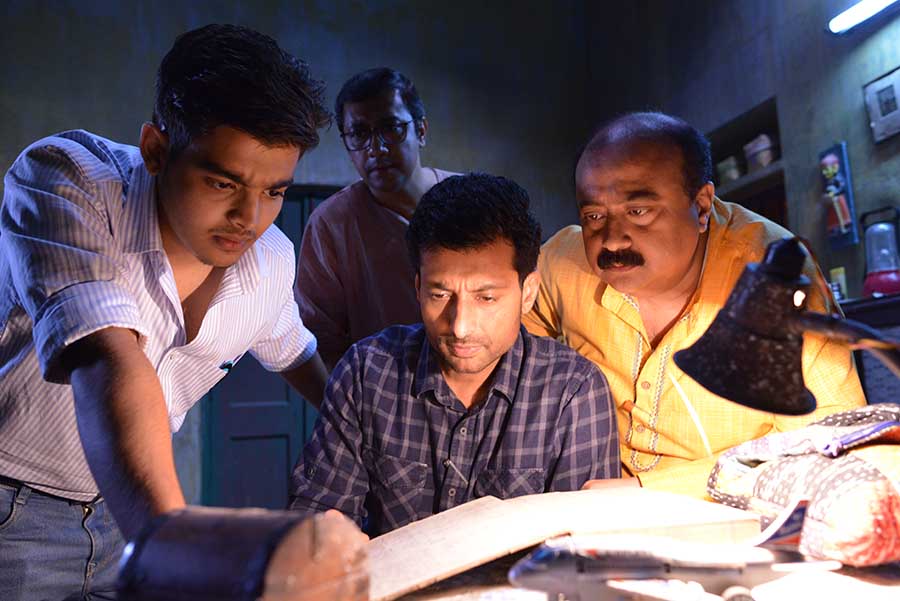 The trio of Indraneil Sengupta (centre), Abhijit Guha (right) and Ayush Das in a scene as Feluda, Jatayu and Topshe. ‘We are looking forward to the release of Nayan Rahasya with a mix of anxiety, excitement and happiness,’ said Indraneil.