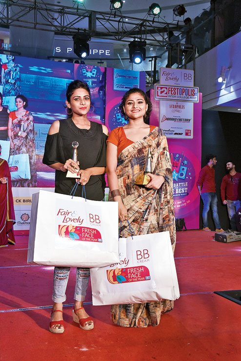Aindrila Sharma (right), a first-year computer science engineering student at Dr. Sudhir Chandra Sur Degree Engineering College, was the Fair & Lovely BB Cream Fresh Face of the year. Rikhia Roy Chowdhury (not in picture), a first-year psychology student of Victoria Institution, was the runner-up and Disha Mallick (left), a second-year English student at Bidhannagar College, placed third.