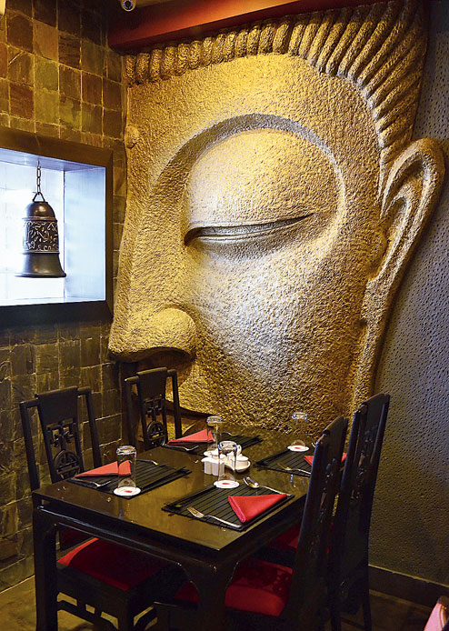 The decor of the 55-seater dine den is comfortingly familiar. Buddha welcomes you at the entrance, the music of chants calms your senses and one of the rooms has a three-piece circular artwork. Ask what it is and you’re told it’s the Thai circle of life.