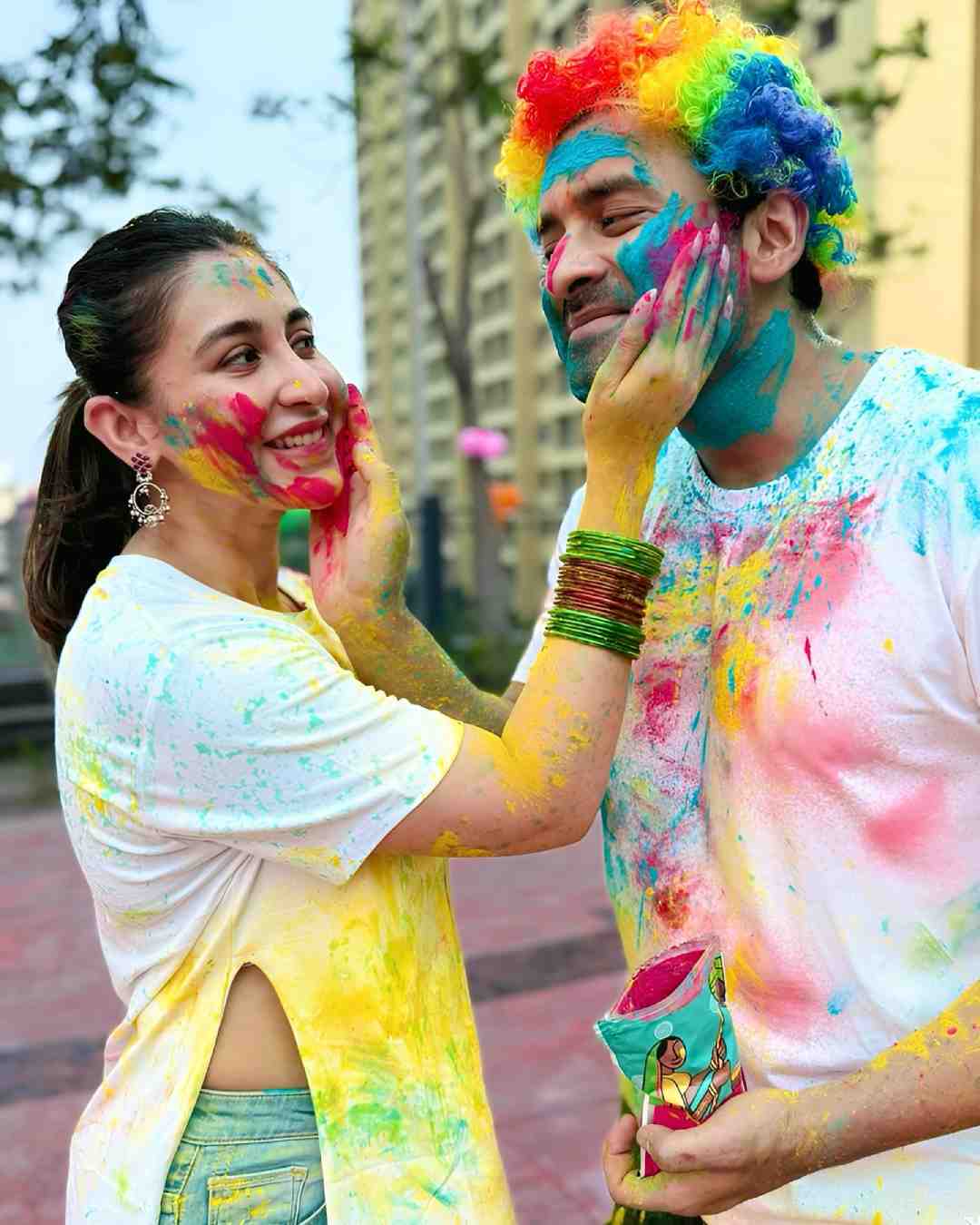 Koushani Mukherjee and Bonny Sengupta celebrated the festival of colours together.