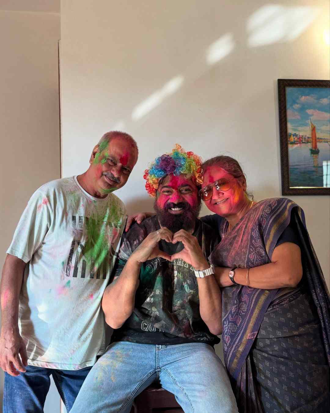 Dev celebrated Holi at home with his parents. He also joined the team of his upcoming film Raghu Dakat for a fun-filled celebration at his office.