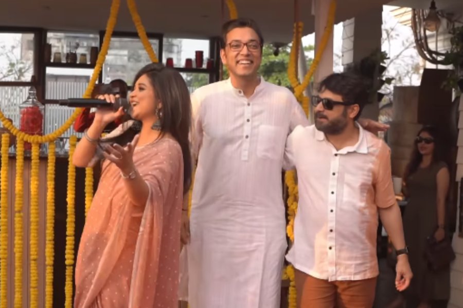 Anupam Roy shook a leg with his wife Prashmita Paul at the Aamar Boss event.