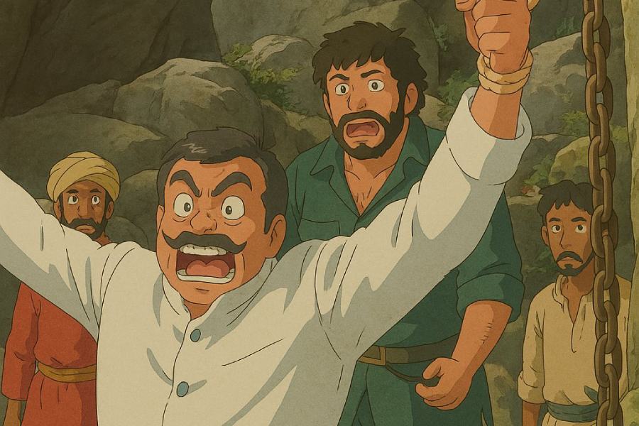 Who would have thought that the iconic “Yeh Haath Mujhe Deh Deh Thakur” scene from Sholay could have taken such an adorable, Ghibli-esque twist?