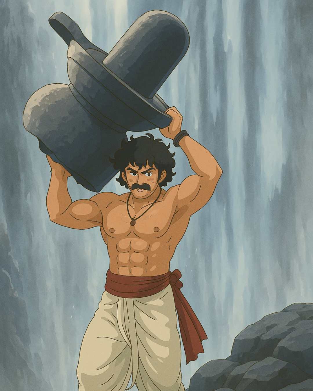 Prabhas’s Baahubali character Shivudu carrying the Shivling looks straight out of a Miyazaki war epic.