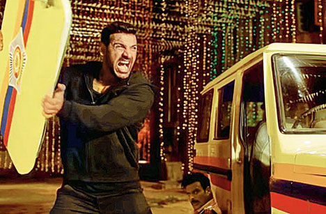 Directed by Milap Milan Zaveri — attempting to shift gears here after churning out comedies like Grand Masti and Mastizaade — Satyameva Jayate is an assault on the senses. First, there is so much blood everywhere — splashed on streets and smeared on faces — that you may think you’ve slipped on red-tinged 3D glasses (okay, thank god, this film is not in 3D!)