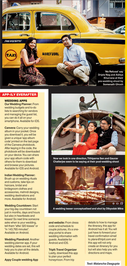 The trend is to shoot a Bollywood love song featuring the real-life hero-heroine at a real location. “We have shot at locations like Eco Park, Victoria Memorial, Botanical Gardens, Elliot Park, Maidan and Vedic Village. Couples are even willing to travel to places like Digha and Mandarmani for the shoot,” he added.